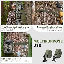 CLIMBING TREE STAND STRAPS: Set of 2 tree stand utility strap. Utility straps for summit treestand accessories is up to 75inch (190 cm) long and 1 inch (2.5cm) wide, with a weight capacity of up to 220lbs, ensuring your safety and security when hunting and climbing, providing you with a reliable guarantee. MULTIPURPOSE USE: Tree stand straps for summit climber can be used for many different hunting applications. Great for carrying stand on your back and securing gear; Hunting utility straps connect the top and bottom of stand to keep it stable; Tree stand stabilizer straps can also be used to hang trail cameras from trees. DURABLE STRAP: Backpack straps for summit viper accessories are made from high-quality polypropylene fibers, double-woven at every where to ensure superior strength and durability, and the interfaces of climbing stabilizer straps are cross-stitched to further enhance structural strength to hold up to 220 pounds. STRONG CAM BUCKLE WITH QUICK-RELEASE BUTTON:The buckle of climbing tree stands storage accessory is made from heavy duty metal, and the sturdy buckle teeth firmly grip hunting stand straps without coming loose.The buckle includes a quick release thumb button, eliminating the need to spend time tying and untying knots. LIGHTWEIGHT & PORTABLE:2 Deer hunting stands utility straps together weigh less than a pound and can be easily folded in a hunting jacket or elsewhere to carry with you. Whether you are on an outdoor adventure or for everyday use, this set of high quality tree stand straps replacement will provide you with reliable protection.