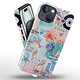Generic Case Compatible with iPhone 15,Scratch Resistant Hybrid 2-Layer Hard Shell Phone Case,Seashells Beach Summer Jellyfish Collage