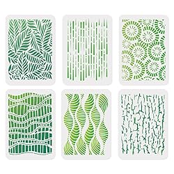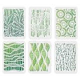 - 6 Pack Abstract Geometry Texture Stencils for Painting A4 Size Reusable Plastic Leaves Lines Stencils for Painting on Wood Wall Floor Fabric, DIY Home Decor Craft Stencil