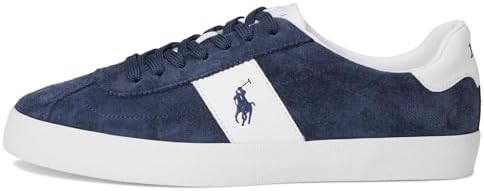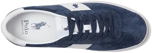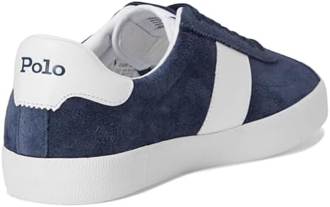 Designed for bold and classy, the Polo Ralph Lauren Court Vulc Leather-suede Sneaker is crafted from leather upper, fleece, mesh lining, and padded insole, this pair of shoes features round toe, lace-up closure, reinforced heel, brand name embossed at the outer side and debossed at the heel, and "Polo Ralph Lauren" printed at the tongue. Textured rubber outsole.