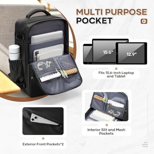 Travel Backpack For Women Men Carry on Backpack Luggage Flight Approved Personal item Travel Bag Essentials Mochila de viaje Laptop College Backpack Black