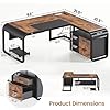 SEDETA 63 Inch L Shaped Desk with Drawers, Executive Desk with File Drawer, Large Office Desk with Storage Shelves, Computer Desk with Power Outlets and Mobile CPU Stand for Home Office, Rustic Brown
