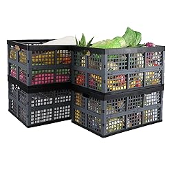 Ewingger 4-Pack 42 L Collapsible Crates, Plastic Folding Storage Crate Baskets
