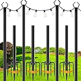 zoegi 4 Pack 10Ft String Light Poles,Light Poles for Outside Lights with Fork,Outdoor Brackets Hanging Lights,Metal Stand for Deck Patio,Backyard,Wedding,Deck,Party