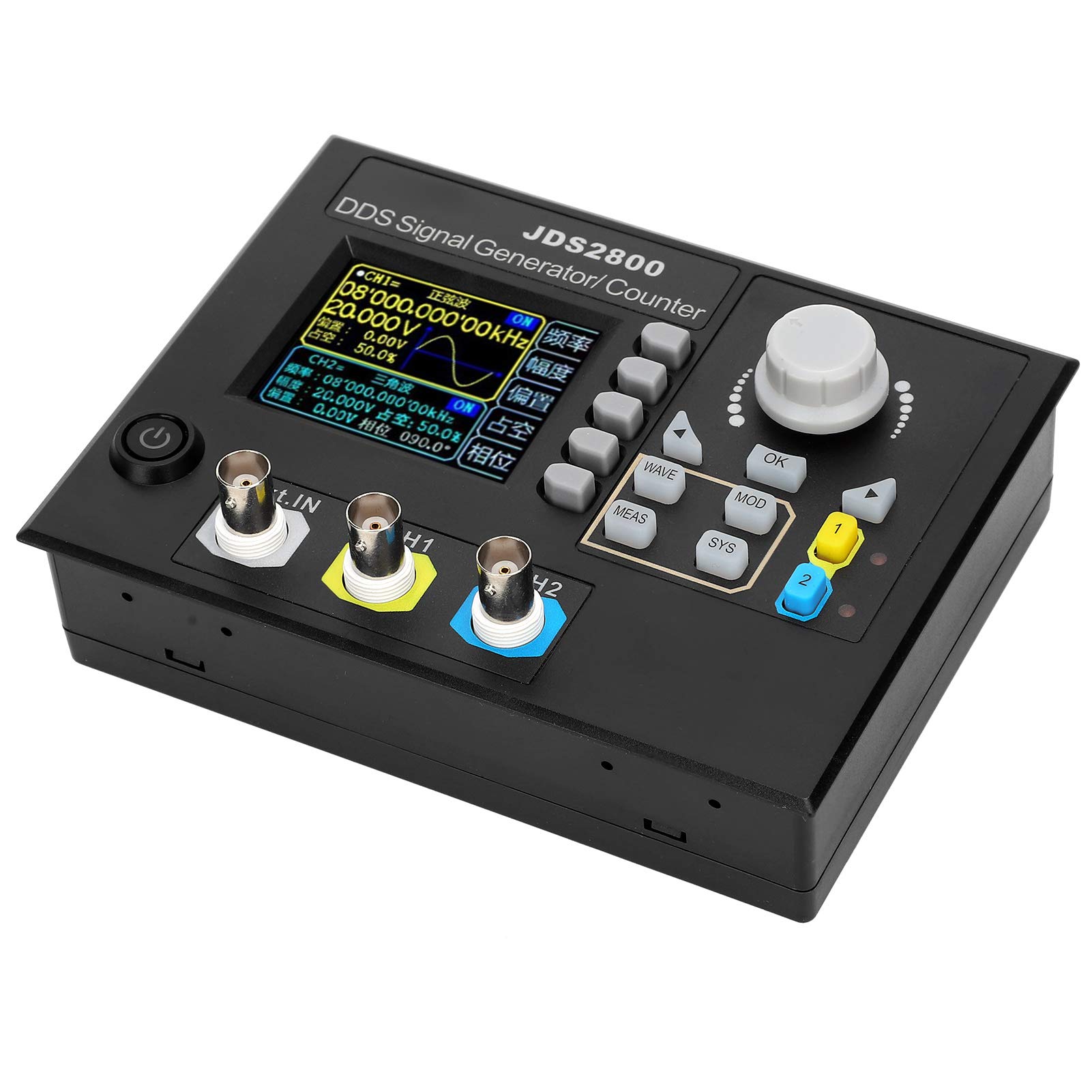 JDS6600-60MHZ series Dual-channel Function Signal generator combines multiple functions in one, such as Function Signal Generator, Arbitrary Waveform Generator, Pulse Generator, Sweep, Counter and Frequency Meter, etc. The instrument adopts the Direct Digital Synthesizer(DDS) technology and provides stable, precise, pure and low distortion signals. It's a great testing or measuring instrument for electronics engineers, electronic laboratory, teaching and researching. ►320*240 2.4" TFT color LCD display, simultaneously display parameters of CH1 and CH2 ►Ability to reproduce patterns of custom waveform ►Use soft silicone keys instead of traditional patch keys, high sensitivity and convenient for operation ►60 groups of arbitrary wave storage function, memory depth of each group is 2048*14bits ►Duty-cycle of each channel can be adjusted independently, the adjusting resolution is 0.1% ►With digital signal output function, CMOS output range 0~10V ►The model sold on this link is JDS6600-60M,The maximum sine wave frequency is 60MHz, and the maximum square wave is 25MHz, 266MSa/s sampling rate and 14bits vertical resolution ►Equivalent performance-phase difference 360°continuously adjustable.Equivalent performance dual channels can simultaneously output the same or different function signals or arbitrary waveform signals, all parameters can be adjusted independently, and the phase difference between the two channels is continuously adjustable from 0-359.9 °. ►Trigger functions-Four trigger modes.You can use sine wave, square wave, saw-tooth wave or arbitrary wave to generate pulse train. The number of pulse periods is continuously adjustable between 0-1048575. ►Pulse width-precisely adjustable.With independent operation interface, the function is clear; with independent control switch, it is convenient to control. Adjustment range: 25ns-4000s; pulse offset continuously adjustable between 0% -120%; pulse amplitude can continuously adjust between 0-10V, and be accurate to 0.01V. ►Arbitrary waveform can be draw. Provide free host computer software and communication protocol, use the host computer software to draw arbitrary waveforms; use the communication protocol to secondary development programming; all functions of the instrument can be controlled by the host computer software.
