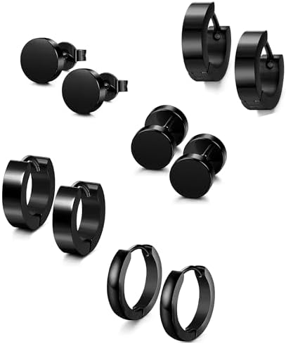 Jstyle 5 Pairs Hypoallergenic Stainless Steel Earrings For Sensitive Ears Simple Stud and Hoop Earrings Huggie Earring Set 18G