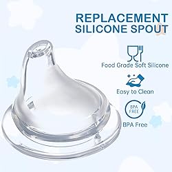 Soft Silicone Spout for Easy Transition: The replacement spout is made from soft silicone, offering just the right amount of hardness to help the little one adjust from bottle feeding to sipping from a cup. This soft spout for sippy cup ensures a comfortable drinking for little ones No Leakage Spout Replacement: Featuring a cross-cut design, the spout replacement will not spills, ensuring that water stays contained and remains mess-free during mealtime. This no leak feature is perfect for NUK sippy cups, providing hassle-free use Air Vent for Less Discomfort: Designed with a built-in air vent, this silicone spout lowers the amount of air your little one swallows while drinking, helping to minimize discomfort and keeping drinking more pleasant. Ideal for NUK active and learner cups Helps Teach Drinking Skills: The soft spout for sippy cup offers better control of water flow, allowing the little one to learn how to drink independently. It's an excellent choice for those transitioning away from bottles while maintaining comfort and convenience Easy-to-Clean Silicone Spout: This silicone spout is designed for easy detach and cleaning, ensuring that your the little one's drinking cup stays fresh. Compatible with NUK Leaner cups, it's simple to maintain for daily use