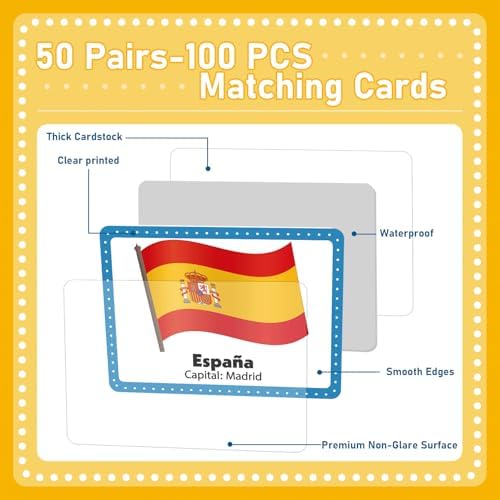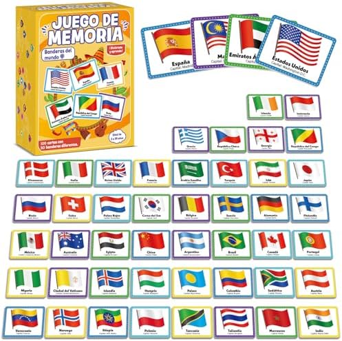 - Great gift: Nuestro juego de cartas de concentración de banderas del mundo es un regalo ideal para tus seres queridos y familiares; les encantará recibir este regalo único. Memory games for kids & adults offers a meaningful and cheerful experience for all. Play with friends and compete to see who remembers quickly and accurately. Ideal for Spanish speakers or learners, as it helps practice vocabulary and improve language skills while having fun.