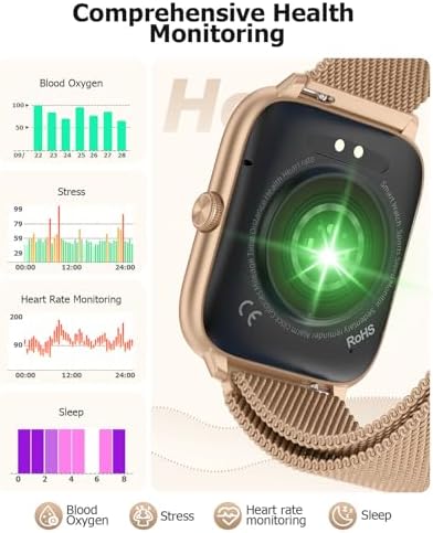- COMPREHENSIVE HEALTH TRACKING — Monitor your heart rate and stress levels 24/7, track blood oxygen levels (SpO2) and sleep patterns to help you make informed health decisions. Stay on top of your wellness with hydration reminders, sedentary alerts, and heart rate warnings. View detailed health reports through the companion app for a complete picture of your health. (Disclaimer: This is not a medical device. Measurements are for reference only.)