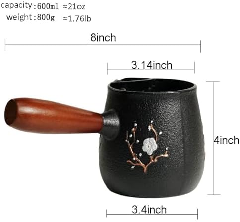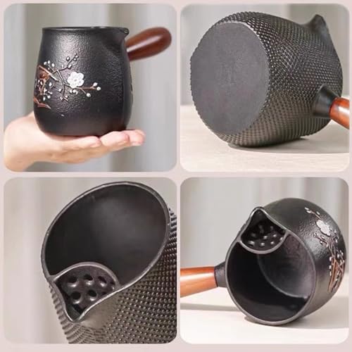 Handcrafted Cast Iron Teapot for Open Flame Brewing - Side Handle Tea Kettle for Milk Tea, Boiling, and Steeping - Traditional Tea Set (Plum Flower)