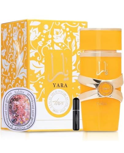 Bundle of Perfumes Yara Tous 3.4oz Eau De Perfume with 1 Travel Refillable Bottle(5ML) & 1 Scented Car Freshener Card