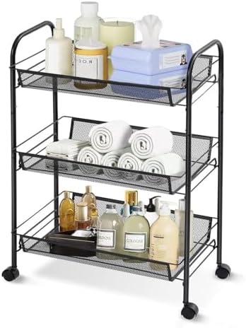 - 【4 High-Frequency Scenarios & More Storage Methods】 3 tier rolling cart for key scenarios, nice fitting home storage needs such as Kitchen (Holds spice jars, snacks, and cookware—easily accessible by the stove; Bathroom(Organizes shampoo, towels, and detergent—moisture-proof and clutter-free); Dorm/Office(Stores books, cosmetics, and stationery—slides under desks to save space); Laundry Room(Keeps detergent and drying racks—convenient for mobile storage)