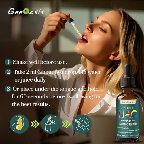 Liposomal Liquid NAC Supplement N-Acetyl Cysteine Drops, N Acetyl Cysteine 600 mg with Quercetin & Zinc for Adults & Kids, Liver & Lung Support, Antioxidant, Immune & Skin Health, 2 Fl Oz