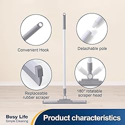 Yocada Rubber Floor Squeegee Broom TPR Blade Adjustable Scrubber Squeegee Household Broom for Shower Bathroom Kitchen Home Tile Pet Hair Fur Floor Marble Glass Window Water Foam Cleaning 53.15"