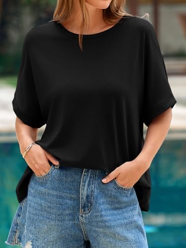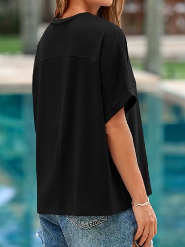 Cicy Bell Womens Oversized Short Sleeve Tshirts Summer Casual Round Neck Tops Loose Fit Boxy Basic Tee Shirts Black