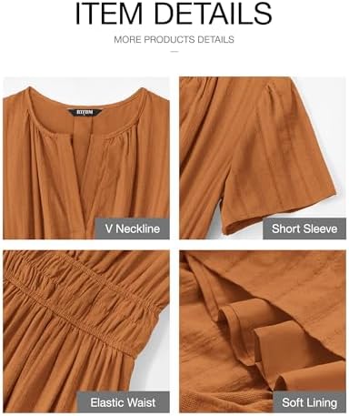 BTFBM Womens Summer 2025 Casual Midi Maxi Dresses Lightweight Short Sleeve V Neck Elastic Waist Boho Beach Dress Pockets