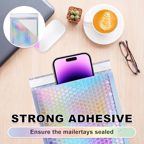 - 𝐇olographic 𝐃esign: Our holographic bubble mailers feature a beautiful holographic design, adding a touch of eye catching appeal to your packaging. Stylish colors make your package impressive and stand out.