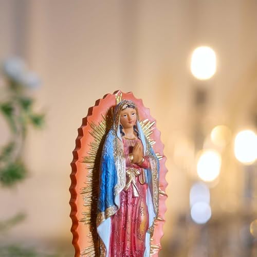 Our Lady of Guadalupe Statue Virgen Catholic De Guadalupe Figure Religious Gift for Mother's Day Inspirational Home Decor Hand Painted Sculpture 8 inch