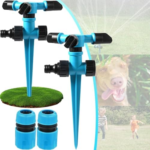 - [360° Rotating Coverage] Transform your lawn care routine with this garden sprinkler featuring 3 adjustable arms and customizable spray angles (45° for broad coverage, 90° for focused watering). Its 360° rotation ensures seamless irrigation, from flower beds to vegetable gardens, leaving no dry corner untouched. Effortlessly maintain lush, healthy greenery across your yard