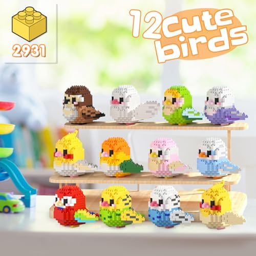 12 Styles Mirco Mini Parrot Building Block Sets, Colorful Small Birds Building Bricks Kits, Not Compatible with Lego Bird, Cute Animals Toys Party Favors Christmas Gift for Kid