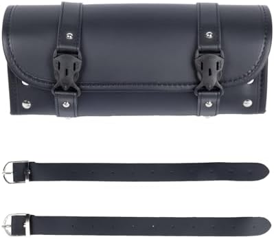 Waterproof Motorcycle Tool Bag - Universal PU Leather Storage for Front Forks, Sissy Bar & Handlebars | Heavy-Duty Design with 2 Reinforced Straps | Compact Organizer for Tools, Road Trips Essentials