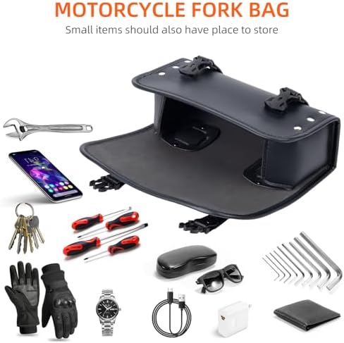 - 【EASY TO ACCESS】 The motorcycle fork bag comes with 2 buckle straps, installation was a breeze, just loop the straps around seat posts or forks and you're done. This pouch looks stylish on motorcycle or bike.