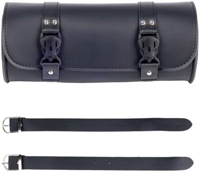 Motorcycle Tool Bag Universal Water-Resistant PU Leather Storage for Front Forks, Sissy Bar & Handlebars | Heavy-Duty Design with 2 Reinforced Straps