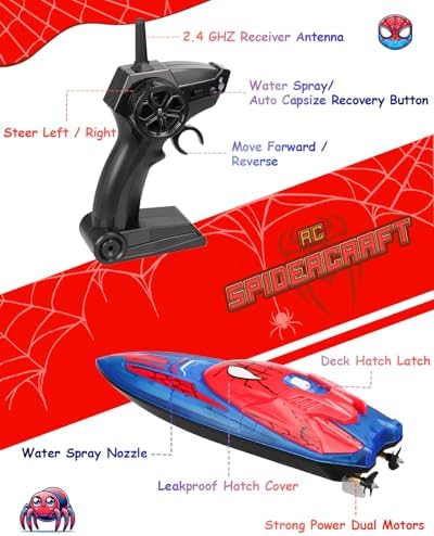 - [Dash Like a Spider Hero] Introducing our 2025 Fullware Spider Series’ newest member: the Spider Hero RC Boat! Say goodbye to boring designs—this bold new look will have kids thrilled to race across the water with their hero-inspired speedboat.