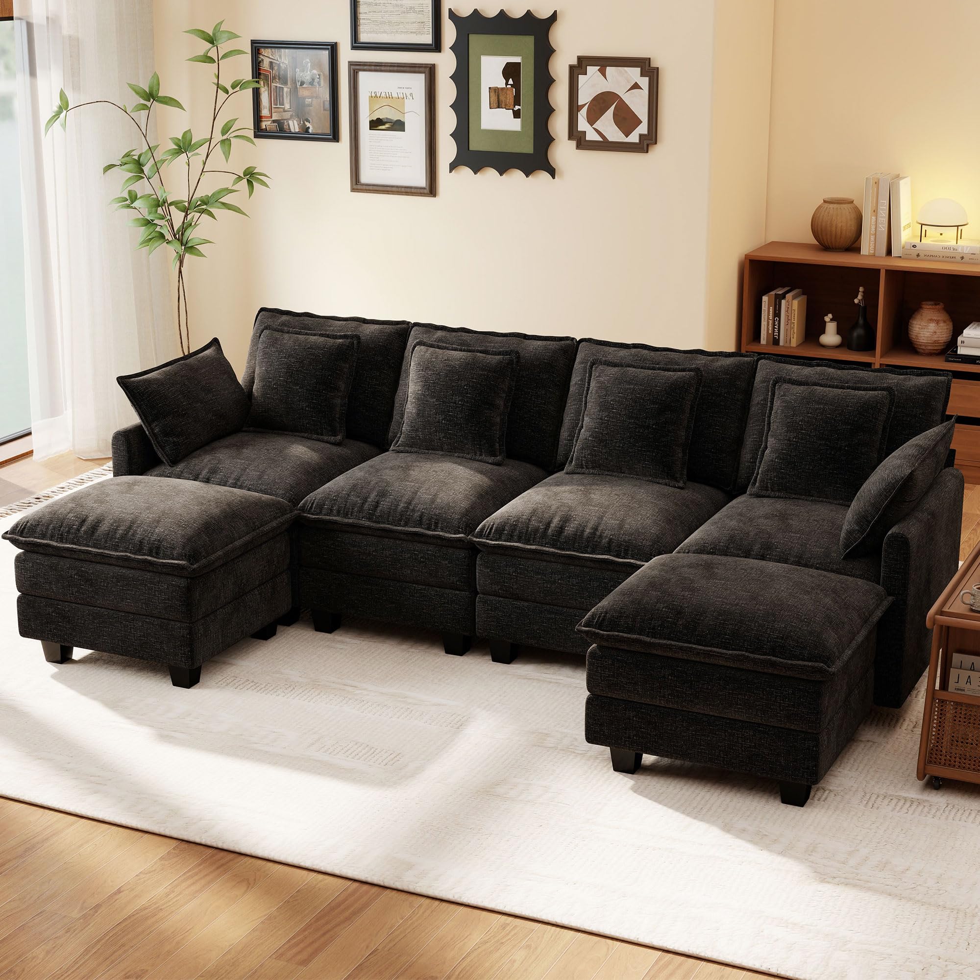 - Ihanherry 111.4" U Shaped Modern Cloud Sofa Modular Sectional Couch with 2 Ottoman, 5-Seat Chenille Deep Seat Sofa with Pillow for Living Room, Bedroom and Apartment, Grey