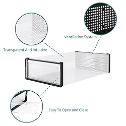 【Durable Material】Made from-quality PP material, the shoe box features a combination of soft body and hard front and back frames, ensuring long-lasting durability and reliable protection for your shoes 【Stackable & Space-Saving】 The shoe boxes can be easily stacked, and the unique top groove ensures they stay securely in place, saving space and keeping your area neat and tidy 【Convenient Front Door】Equipped with a front door, allowing you to access your shoes without having to move other boxes, making it incredibly convenient to use 【Quick Identification】The transparent box lets you quickly spot and select the shoes or items you're looking for, helping to save time. It's also easy to clean and reuse 【Multiurpose Use】Besides storing shoes, this versatile shoe box can also be used to store cosmetics, toys, clothes, books and more, catering to various storage needs