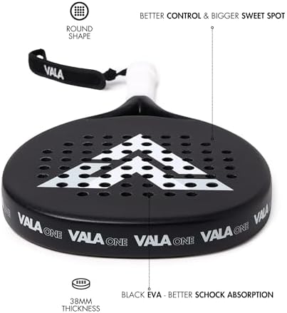 VALA One Padel Racket–Lightweight Paddle Carbon Fiber, Shock-Absorbing Design, Round Shape, Extra Grip Texture for Spin & Control, Pala for Men - Women, Ideal for Beginner-Intermediate Player