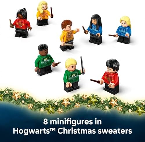 A holiday season full of magical surprises awaits young witches and wizards with the LEGO Harry Potter Advent Calendar 2025 (76456) building toy for girls and boys 7 years old and up. This magical building set transforms December into a month of Wizarding World adventures as young builders count down to Christmas. This enchanting advent calendar building set features 8 LEGO minifigures of beloved characters: Harry Potter, Cho Chang, Draco Malfoy, Hannah Abbott, Angelina Johnson, Blaise Zabini, Cedric Diggory, and Luna Lovegood, all wearing festive Hogwarts Christmas sweaters and carrying wand elements. Kids will also uncover buildable LEGO figures of magical creatures including Hedwig, Buckbeak with posable wings, Aragog with posable legs, a Thestral with posable wings, a Mandrake, and a Stag Patronus. The surprises continue with 10 collectible mini builds of iconic Wizarding World items, like a Hogwarts acceptance letter, chocolate frog, Bertie Bott's Every-Flavour Beans, the Sorting Hat, 3 magical potions, 2 galleons and The Monster Book of Monsters. Each door reveals 1 of 24 LEGO Harry Potter toy surprises that spark pretend play possibilities and festive Hogwarts storytelling ideas. Makes a perfect Christmas gift or holiday present idea for young fans who love Harry Potter toys and imaginary adventures in the Wizarding World. For enhanced building fun, parents can help kids access the LEGO Builder app with illustrated instructions and 3D viewing tools. Contains 278 pieces.