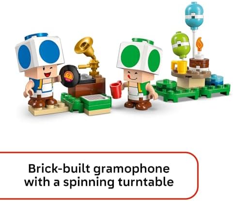 - PARTY TIME AT TOAD'S HOUSE! – Young gaming fans ages 7 years old and up can build the LEGO Super Mario Party at Toad's House (72041) playset, complete with a kitchen, bedroom, picnic table, and spinning gramophone