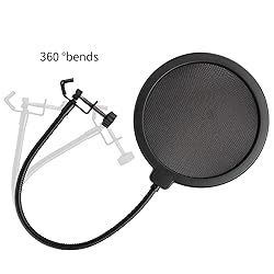 360 Degree flexible gooseneck holder, convenient for use. Adjustable clamp fixes securely to any mic stand. Commonly used in a recording studio.It can also protect the microphone from the accumulation of saliva. 【Functions】Banish the dreaded hissing and lisping sounds that come when pronouncing the letter ""S"" and blocks those ugly ""plosives"" that follows ""B"" and ""P"".Swivel mount for easy installation. Package contents:1pcs Microphone Pop Filter Shield(Microphone Not Included)