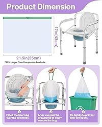 [Easy to Use] Potty liners come in a durable, pull-out design box with 120 pre-separated pouches for easy use—no tearing needed. Provides great convenience for caregivers and home care. [Sanitary Universal Fit] The toilet liner bags fit all standard bedside commodes, adult potty chairs, and buckets. Measuring 21.5" x 17", they are ideal for portable and camping toilets. [Premium Material] The bedside commode liners are made of medical-grade LDPE plastic, offering high load-bearing capacity and resistance to tears and leaks. [Scented Bags] The potty chair liners have a light lavender scent that helps neutralize odors more effectively, keeping the environment fresh and comfortable. [Versatile Use] These value liners are ideal for the elderly, post-operative patients, disabled individuals, pregnant women, campers, travelers, and both hospital and home care.