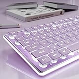 Simple White Backlight: GX710S Backlit Computer Keyboard uses a simple white backlight, the light is simple and more atmospheric. With the suspended water drop pudding keycaps, wired USB keyboard's light transmittance is greatly enhanced, and you don't have to worry about not being able to see the characters clearly. The light can be adjusted to 5 levels of brightness (FN+PU/PD can be adjusted) Upgraded Water Drop Pudding Keycaps & Less Noise: The quite computer keyboard uses an upgraded version of the suspended water drop keycaps. The suspension design + pudding structure design makes the silent keyboard more transparent. When the light is on, it looks like an elf. The surface of the keycaps is concave and convex, which is very suitable for your fingertips, making typing or gaming more comfortable and easier. It is also quieter, reducing typing noise by 95%. With wired keyboard, you no longer have to worry about noise interference from libraries, cafes, offices or dormitories Ergonomic Design & 26-key Anti-ghosting: Purple Keyboard adopts concave & convex design keys to fit your fingers great, typing smoother without tiring. The bottom is equipped with two footrests and 4 anti-slip bottom stickers. After adjustment, the egonomic keyboard has a 7° tilt, making your typing more comfortable. 26 keys can be operated simultaneously without conflict, so you can experience fast answers when playing games or typing Metal Panel & Universal Compatibility: Wired Keyboard uses thickened metal panel with frosted matte finish, which has upgraded touch and provides great anti-scratch protection, making it more durable. This PC keyboard works with your PC, desktop, laptop or notebook. Compatible with Windows, Linux, Chrome and Mac Doing Responsibly and Sustainably: As a responsible company, EWEADN operates sustainably, to high environmental and social standards. We continue to embed sustainability ever deeper in our business in operations and beyond, together with our suppliers. The aesthetics keyboard with a number pad also comes with 48-month brand support. Our expert team always stands by your side