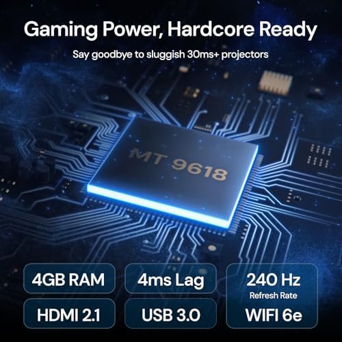 - Future-Proof 4K Streaming - Step into the future of projection with the cutting-edge Al-SoC MT9618 chipset, boasting 4GB RAM and 128GB ROM. and experience a significant leap in performance compared to traditional 2GB/32GB projectors. With enhanced memory and storage, you'll enjoy seamless multitasking, faster app switching, and smoother 4K UHD streaming—without the hassle of lag. This future-proof technology keeps you ready for upcoming content with lasting efficiency.