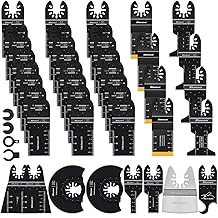 - The Complete Package:Our oscillating tool kit comes loaded with everything you need to get started:1 oscillating tool,3 straight saw blades, 1 segment saw blade,a flexible scraper,a sanding pad holder,15 sanding papers,and an auxiliary handle.Tool-free blade installation makes switching blades a breeze—seriously,it’s that easy!
