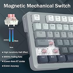 Rapid Trigger Gaming Keyboard, Hall Effect Magnetic Switch, Adjustable Actuation, 8k Hz Polling Rate, Volume Knob, RGB Backlit, PBT Keycaps, 75% Compact Wired for PC Gamer, Gray/Black