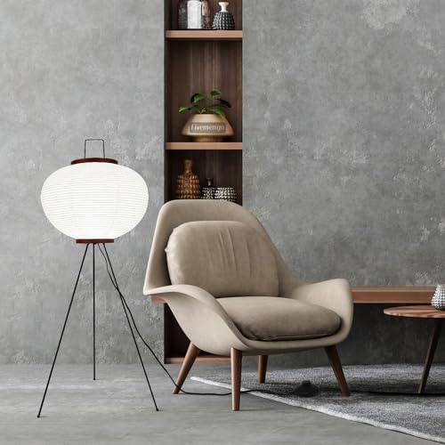 - AUTHENTIC DESIGN: Tripod floor lamp with traditional Japanese rice paper lampshade creates a soft, diffused light effect while the metal tripod stand provides modern stability and style