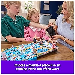 Lilo & Stitch Game: Help the friends of Team Stitch ride the waves & reach the shore before the villainous crew does to save Stitch from being taken back to Planet Turo in this exciting marbles game Play with the Whole Ohana: Based on the award-winning Magic Mountain game, send marbles racing down the waves to hit your friends & send them surfing towards the shore while avoiding Jumba’s goons Get to Shore to Win: Exciting, easy gameplay helps teach young kids new to strategy games while having fun with their favorite characters from Disney’s Lilo & Stitch. For 2-4 players, ages 5 & up Family Game Night: Keep the fun going with more Spin Master Games to add to your family’s board game shelf: Hedbanz, Beat the Parents, Family Feud, Jumanji, Wicked: The Game, Mind the Gap & more Spin Master Games & Toys: Looking for kids games, yard games & card games for adults, kids or teens? Find family favorite puzzles & games for family game night, travel games, kids puzzles & more Includes: 6 Friends, 4 Villains, 10 Character Stands, 10 Surfboards, 5 Marbles, Bag, Game Board, 4 Supports, Double-Sided Shore Tile, Instructions