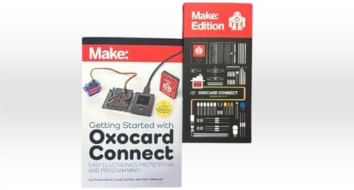 Oxocard Connect Innovator Kit – Make Real Projects, Real Fast Learn. Build. Achieve. 15 guided experiments teach you real electronics: from LEDs to motion sensors, sound synthesis to servo control, gas sensors to games development; no experience needed!Code with NanoPy.io, an online Python-inspired development platform designed to make microcontroller-based innovation fast, stable, and beginner-friendly.Develop real-world skills with cutting edge hardware, included electronic components, and a world-class toolchain. Prototype like a pro. Joy in Every Circuit Plug & Play cartridges let you power up your Connect with new abilities and share it between projects. Just insert and create.Creative freedom to innovate fun, imaginative, and useful things: LED light shows, reactive sound effects, smart sensors, and more. Stop Letting Kits Collect Dust Other electronics kits are confusing and frustrating, and typically end up abandoned in a drawer. Oxocard Connect and the brand new, exclusive Oxocard Connect book get you building in minutes, with full support, clear documentation, and success from the moment you start. Open Hardware means your own DIY circuit boards too! Featured Components:1× Special Make: Edition Oxocard Connect microcontroller1× Getting Started with Oxocard Connect book1× Breadboard-Cartridge1× USB-C-cable (data /power) Electronic Components:1× PIR sensor (motion detector)1× 10k thermistor (temperature sensor)1× 10k photo resistor (light sensor)1× Potentiometer1× SG92R micro-servo1× Piezo (acoustic signals)1× RGB-LED3× LED (green, yellow, red)2× Buttons9× Resistors75× Jumper Wire Pieces5× Digital LEDs Make: has proudly partnered with Oxocard to bring this exclusive special edition of the Connect Innovator Kit and more to North America and the Maker Community worldwide. Join us and together we can Make a better future! For resale, retail and other inquires in North America, contact [email protected].