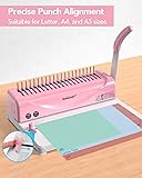 GET YOUR MONEY'S WORTH: Our binding machine allows for binding papers simultaneously while punching, which greatly improves efficiency when doing massive binding tasks. It also comes with a box (about 100pcs) of 3/8'' black PVC comb binding spines(for 50-60 sheets binding capacity) ➤Max binding capacity: 400 sheets of paper(with 2'' comb binding spines, not included in package). ➤Max punch capacity: 10-12 sheets of printing paper(paper thickness≤80g(20lb) ), 2 sheets of 230g(≤85lb) cover/textured paper, 1 sheet of 5-12mil PVC cover EASY OPERATION: This 2-in-1 binding machine allows punching and binding operation in only 2 steps. Accurate punch alignment, upgraded cutting blade, and curved handle make it easy to cut papers while requiring less force HIGH COMPATIBILITY & DURABLE: Our upgraded comb binding machine is suitable for letter size (19 holes), A4 size (21 holes), and A5 size (15 holes) paper, ideal for binding a wide variety of projects in homeschool. An enhanced accuracy edge guide from 3mm to 5mm is perfect for pinpoint punching WIDE RANGE OF USES: Our comb binding machine can be used for custom work planners, scrapbooks, mini-books, school projects, journals, and more. Quickly and easily bind your books and documents, perfect for homeschool use and for managing any type of small office-related project HASSLE-FREE GUARANTEE: Every batch of our binding machine undergoes strict quality control and testing before packing, and our friendly and reliable customer service team is available 24/7 to assist you. Purchase with confidence