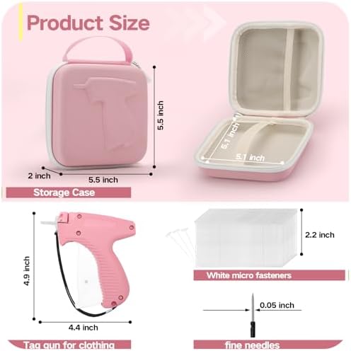 Clothing Tag Gun Kit with Fine Needle Stitch Tag Gun Storage Case 6 Micro Needles 1008 2" White Micro Fasteners Mini Stitch Tag Gun Attachment for Home Shops Warehouse (Pink Tagging Gun)