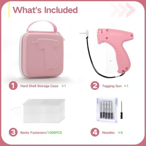 - 🔥【Package includes】 1pc tag gun for clothes, 1008 standard barbs fasteners, Operating instructions and 6 stainless steel needles.There is a hard shell travel case also included. You don't need to buy extra fasteners for a long time. Our standard tagging gun is suitable for all sizes of standard fasteners.