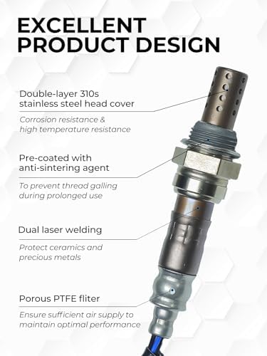 - 【Product Features】The oxygen sensor features high-quality ceramic components and precious metal-coated electrodes, delivering precise and rapid oxygen concentration detection. The housing is made of high-temperature-resistant 310S stainless steel, offering excellent corrosion resistance and durability. Pre-applied anti-seize coating on the threads allows for direct installation.
