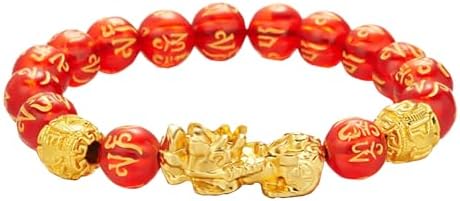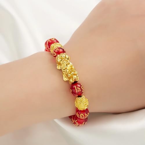 Feng Shui Pi Xiu Obsidian Bracelet for Men & Women – Gold Wealth & Good Luck Charm, Handmade Chinese Crystal Beads, Unisex Jewelry Gift for Prosperity and Protection (Red)
