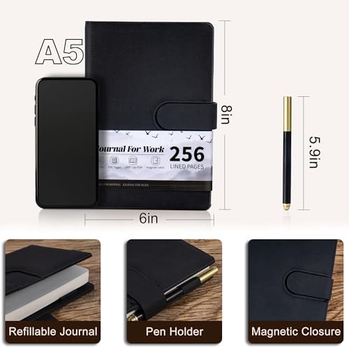 CAGIE Lined Journal for Men 256 Pages Mens Journal Set, A5 Hardcover Leather Notebook Journals for Writing Gifts Box Included, 5.6 x 8.3 inch,Black