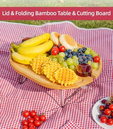 - Folding Bamboo Picnic Table for Picnics and Daily Use—This folding table conveniently transforms the picnic basket lid into a functional tabletop. Crafted from high-quality bamboo with lid arround which prevent fruit fall down, perfecet for the uneven grass,sand and others outdoor ground, it’s durable enough to be used as a cutting board. The built-in cup holders add convenience, while the lightweight, portable design makes it easy to carry anywhere. With folding instructions printed on the bottom, it’s ideal for picnics, weekend getaways, or as a compact kitchen table, combining style and practicality in one