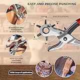 🔹 1️⃣ COMPLETE LEATHER WORKING & CRAFTING KIT – ALL-IN-ONE SOLUTION Our 46-piece Leather Tools – Working & Crafting Kit includes everything you need for leather repair, sewing, cutting, and engraving. Perfect for beginners and professionals, offering top quality at unbeatable value. 🔹 2️⃣ EXCLUSIVE BELT HOLE PUNCHER FOR LEATHER – ONLY IN THIS KIT Unlike most competitors, our set includes a Belt Hole Puncher for Leather — essential for belts, straps, and watchbands. Its precision design ensures clean, consistent holes on any leather thickness. 🔹 3️⃣ PREMIUM LEATHER SEWING KIT WITH AWL TOOLS & STITCHING PRONGS Includes full Leather Sewing Kit with premium Awl Tools and Stitching Prongs (1, 2, 4 & 6 teeth) for perfect hand-stitching. Reinforced needles, waxed threads, and ergonomic handles for long-lasting comfort. 🔹 4️⃣ LEATHER GROOVER & CUTTING MAT – PRECISION AND SAFETY COMBINED Our Leather Groover delivers perfect decorative or stitching lines, while the Leather Cutting Mat (self-healing surface) protects tools and worktops. The best leather cutting setup for professionals and DIY crafters. 🔹 5️⃣ ELEGANT GIFT PACKAGING – PERFECT FOR LEATHER CRAFT LOVERS Comes in premium packaging, ideal as a gift for men and women passionate about leathercraft. Stylish, sturdy, and ready to present — a unique, thoughtful leather crafting gift set they’ll love to use and show.